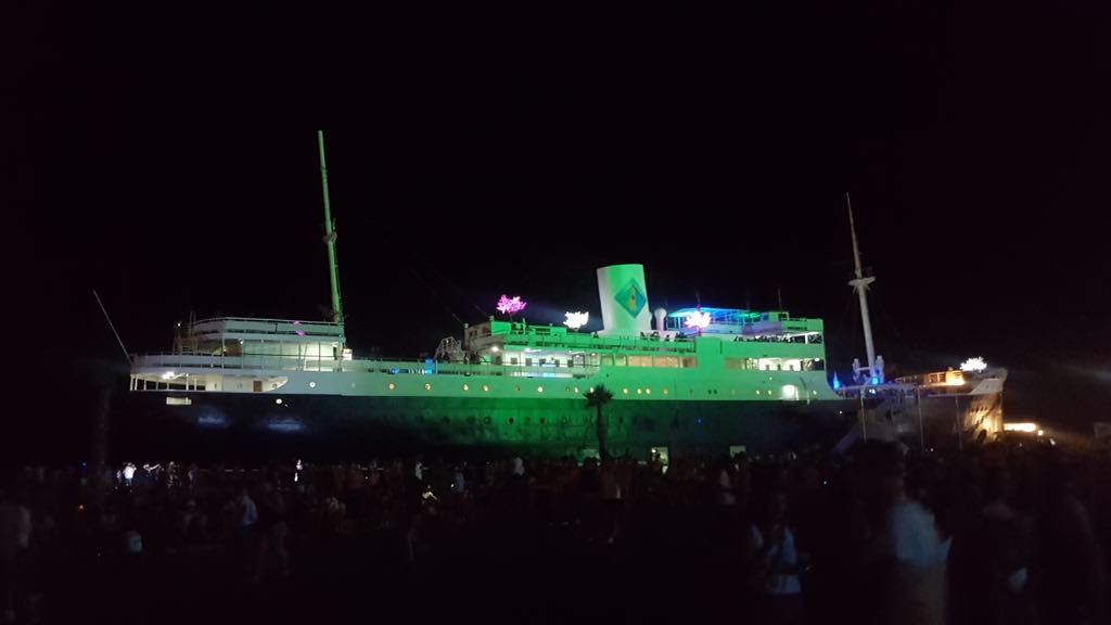 Port-Barcarès est un endroit idéal pour un festival, un immense espace pour la scène principale, pile en face, un paquebot volontairement échoué sur la plage, encadré de bars alignés cachent la Beach stage. Plus loin des manèges qui donnent le tournis offrent une vue panoramique sur l’ensemble du festival.
