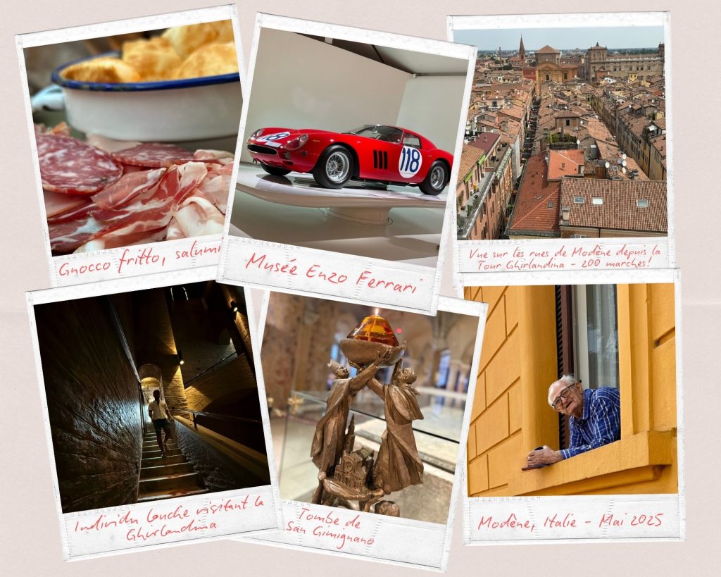 Honnêtement, même si la capitale de la mode m’en a mis plein les yeux rien qu’à la gare de trains, j’ai largement préféré Modène et ses grandes places, son musée Enzo Ferrari, son marché plein de fromages et de vinaigres régionaux. Sans parler du sourire d’un papi qui m’a enchanté ; je ne comprenais pas deux mots de ce qu’il disait, mais il continuait à parler et il était de très bonne humeur… <3